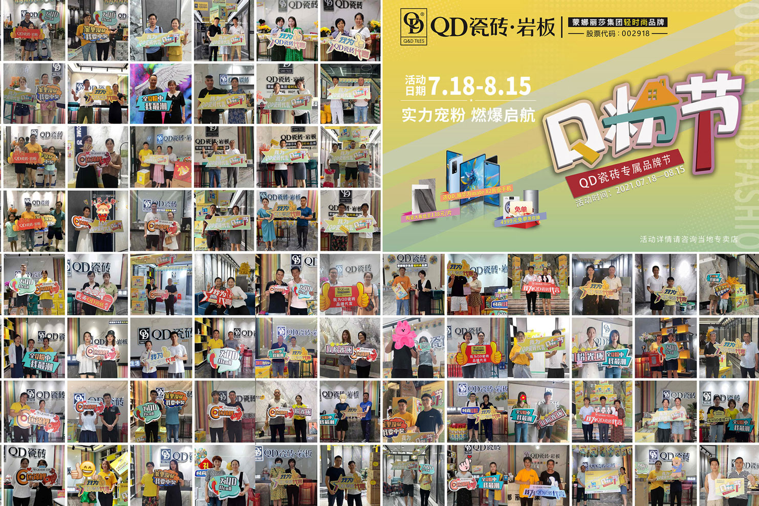 本著“以品質為核心,以服務為根本”的經營理念,QD瓷磚不斷強化服務體系,目前已建立起覆蓋全國的營銷網絡。好風憑借力,集團公司于2017年在深圳證券交易所A股成功上市,股票代碼:002918。