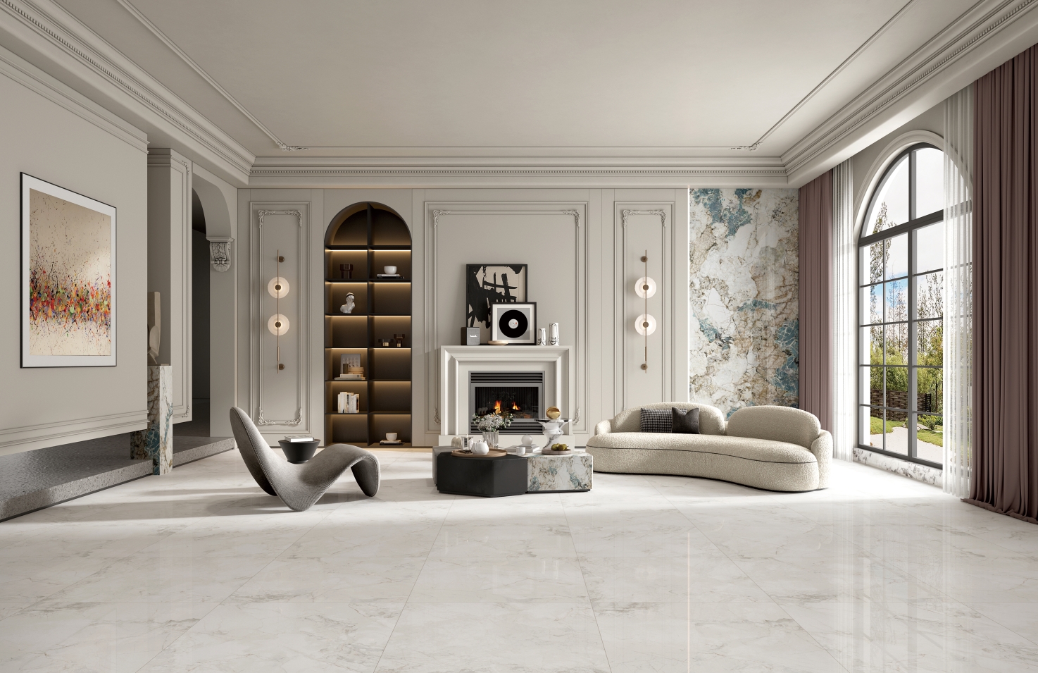取自珍貴石材精髓,融入古冰川之意境,質(zhì)地靈透,天然的紋理正如風(fēng)雪吹過的痕跡,更顯沉穩(wěn),營造極致簡約的空間質(zhì)感。