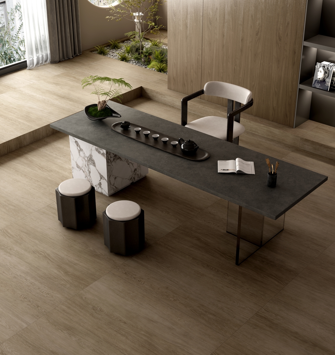 空間應(yīng)用:會(huì)所、酒店、辦公樓等高端商業(yè)空間,室內(nèi)家居墻面/地面、玄關(guān),獨(dú)立工作室
