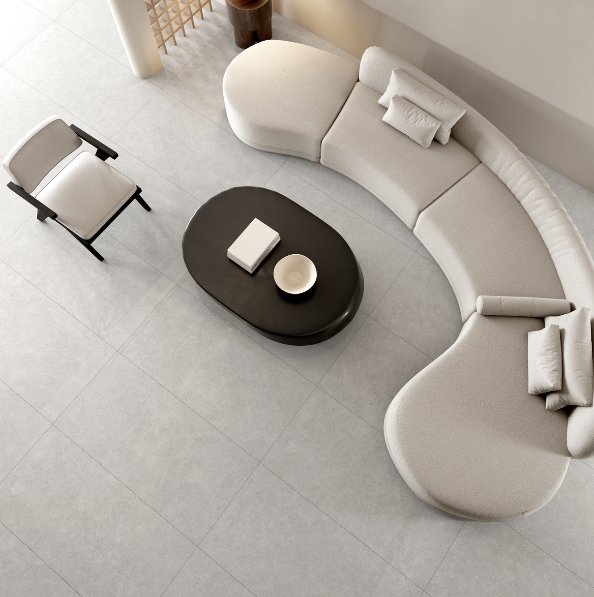 唯美再現(xiàn)大自然中,山峰氤氳在云海里的勝景。灰色底磚,隨機呈現(xiàn)的微小紋理或交織、或貫通之下,沒有多樣的繁復(fù)紋理,就已傳達出匹配現(xiàn)代調(diào)性的美感。