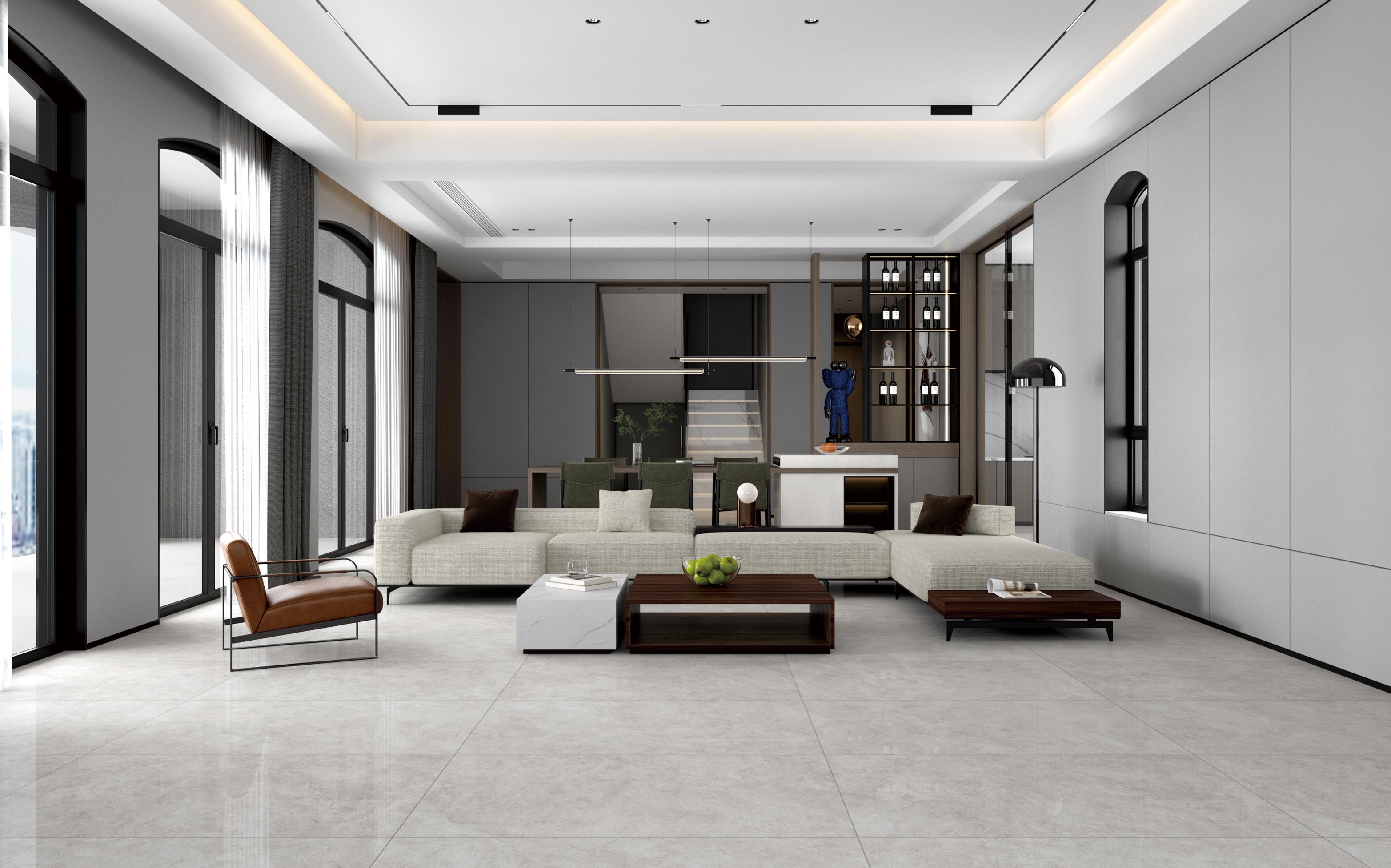 清潤的光澤與巖石的肌理交織,近看細膩而精致,遠看整體效果純粹優雅,大面積鋪貼大大延伸空間縱深感。