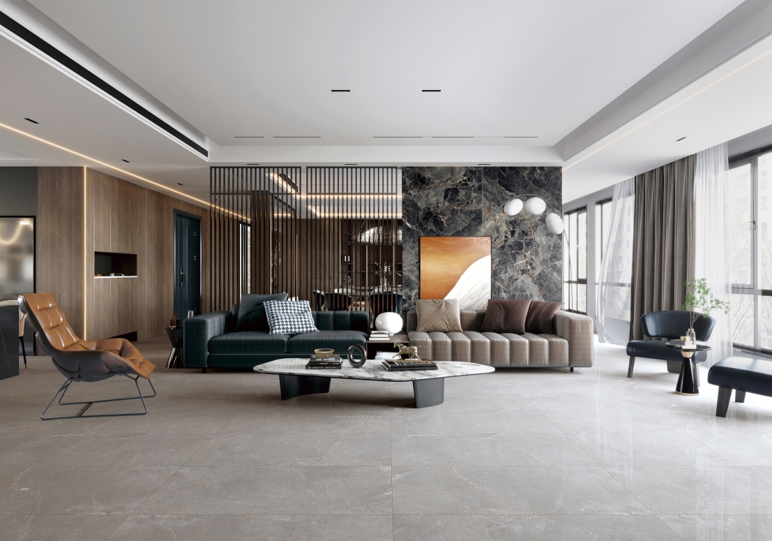 濃郁的灰色色澤,細膩的自然游動,輕松營造出一股浪漫、寫意的空間氛圍。大空間鋪貼,整體感覺更連貫,更氣派。
